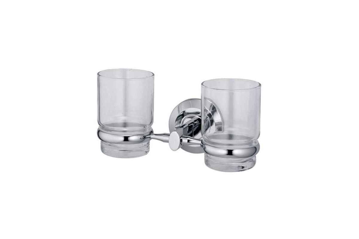 Подстаканник двойной, стекло WasserKRAFT Rhein K-6228D (Германия), металл, хромоникелевое покрытие, уплотнительные пластиковые кольца, прозрачное стекло. Размеры: Ш/Г/В -20x11x11 cm