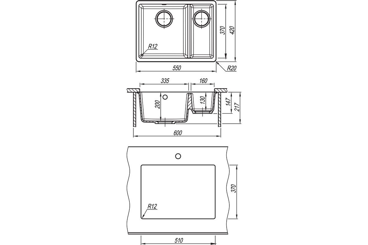 Стильная и современная мойка в блок 60 см; Основная и дополнительная чаша разной глубины; Максимальный комфорт и высокое качество.