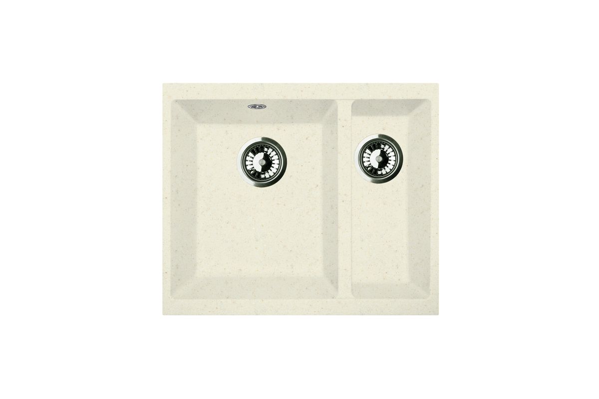 Мойка подстольного монтажа с двумя чашами. Глубина основной чаши 19 см. глубина дополнительной чаши 13 см. Ширина установочной тумбы не менее 60 см. Вырез под мойку 52,5х40 см. Установка под столешницу. Сливная арматура и сифон в комплекте.