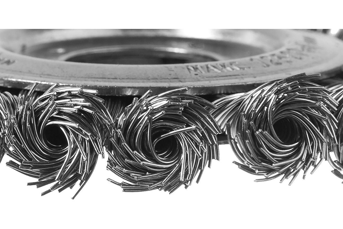 Повышенный ресурс щетки благодаря еще более высокой жесткости сплетенного пучка и увеличенной толщине проволоки