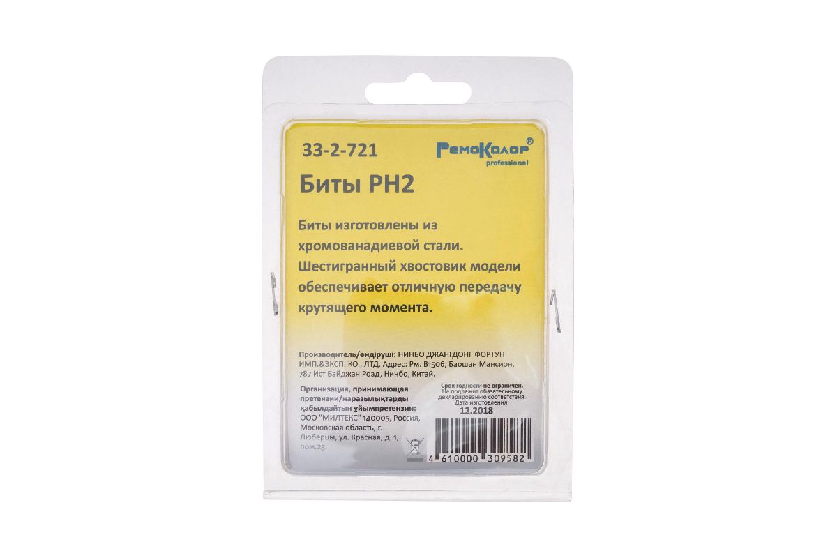 Биты РемоКолор PH 2x50 мм 33-2-721 изготовлены из хромованадиевой стали.