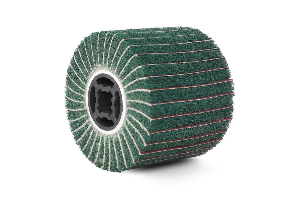 - Изготовлен из нетканого абразивного материала на основе нормального электрокорунда, чередующегося с лепестками изшлифовальной бумаги.