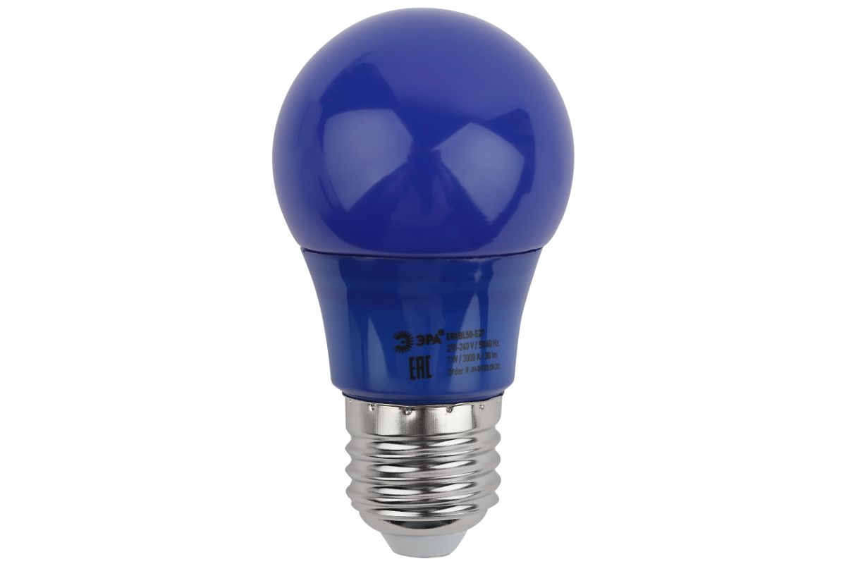 ERABL50-E27 ЭРА LED A50-3W-E27 ЭРА (диод. груша син., 13SMD, 3W, E27, для белт-лайт).
