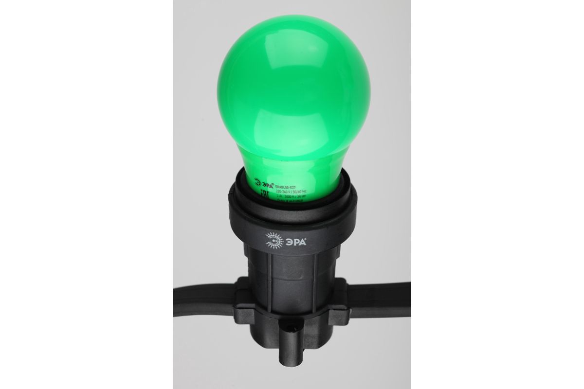 Декоративная светодиодная лампа ЭРА Белт-лайт с цоколем Е27 и колбой груша (А50) зелёного цвета. Мощность - 3 Вт. Идеально подходит для использования в уличной гирлянде-конструкторе ЭРА Белт-лайт , дающей возможность самостоятельного дизайна и монтажа праздничной иллюминации. В составе гирлянды-конструктора позволяет создавать уникальное праздничное освещение по индивидуальным параметрам и для конкретных задач. Вы сами выбираете длину подсветки, цвет ламп и расстояние между источниками света! Это идеальное решение для декора фасадов зданий, оформления витрин, общественных пространств на свежем воздухе. Другие элементы гирлянды-конструктора: патрон Б0049176, кабель Б0049175, набор для подключения (шнур питания с вилкой + коннектор) Б0049180, коннектор Б0049179, заглушка Б0049181, заглушка с крюком Б0049182. В ассортименте ЭРА LED-лампы Белт-лайт E27 разных цветов, в том числе прозрачные и матовые белые. Колбы изготовлены из лёгкого ударопрочного пластика, такие лампы удобно транспортировать, использовать и хранить. Цоколь - из алюминия. Лампы ЭРА Белт-лайт универсальны: подходят к любому светотехническому прибору с патроном для Е27. Создают необычное цветное свечение определённого оттенка. Помогают воплощать в жизнь смелые дизайнерские идеи.